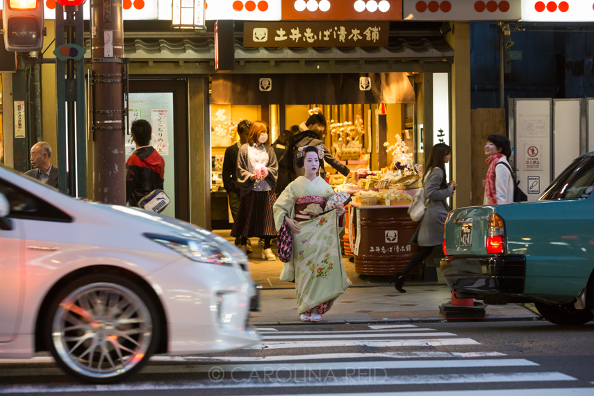 Apprentice geishas, or maikos, can often be seen in the streets of Gion. Geishas are traditional Japanese female entertainers who begin their training in classical music, dance, games and conversation from the age of 15 onwards.