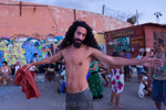 A boy playing football in Mea Shearim, one of the oldest Jewish neighborhoods in Jerusalem, populated mainly by Haredi Jews.
