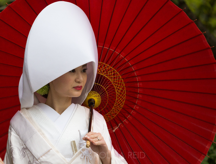 A schoolgirl shelters from the rain in the queue to enter Ginkakuji, also known as the Silver Pavilion. Uniformed school children are a common sight at temples all over Japan.
