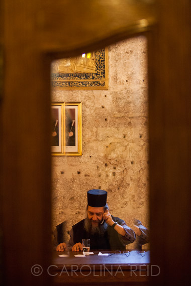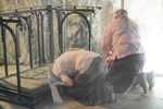 Women praying in the underground rock-cut Chapel of the Finding of the Cross in the Church of the Holy Sepulchre. This is the place where Helena, mother of Emperor Constantine, found the fragments of the cross in the 4th century.